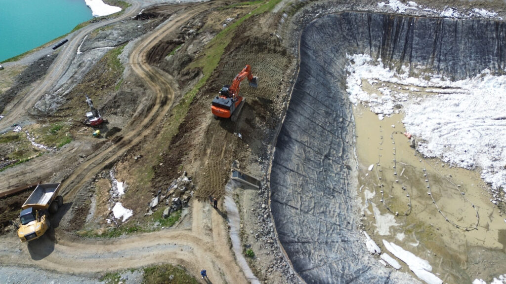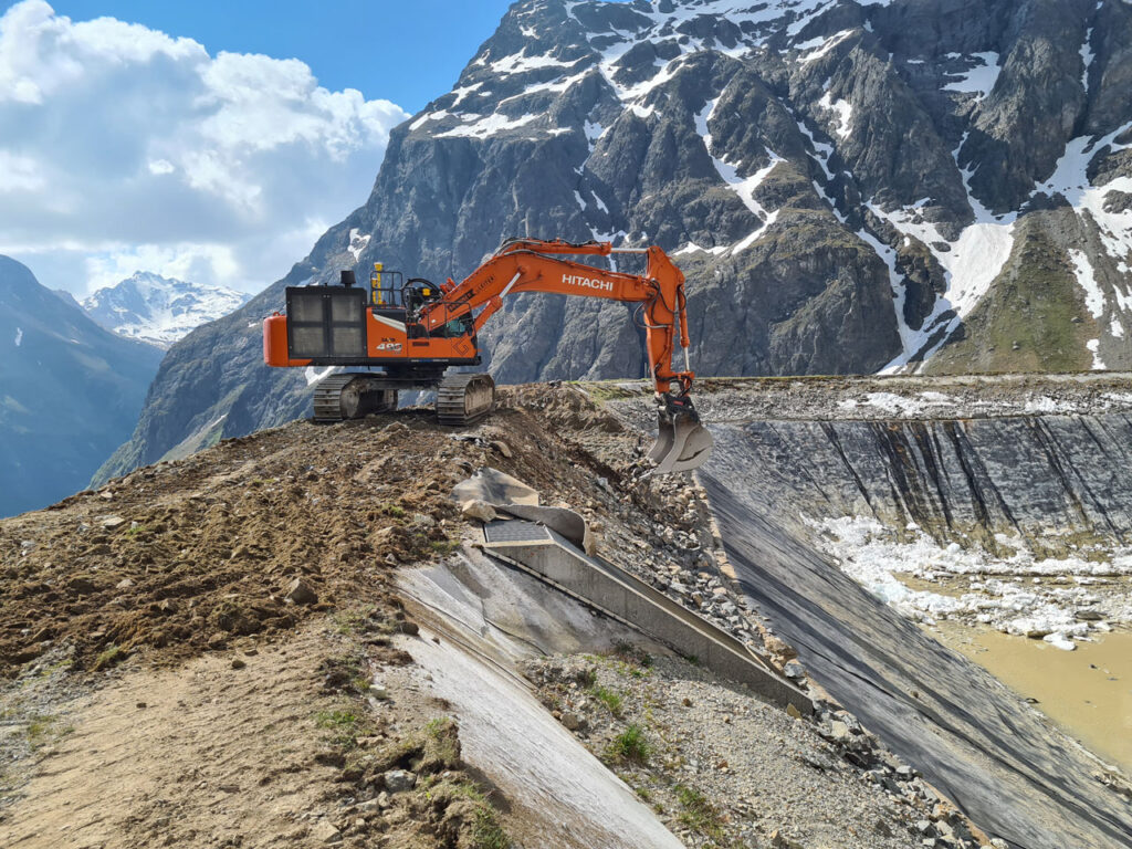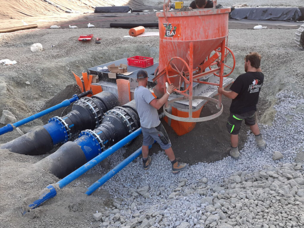 Im Zuge des Projekts wurde der bestehende Speichersee rückgebaut und das Speichervolumen durch umfangreiche Aushubarbeiten erweitert. Der alte Dammfuß wurde abgetragen, eine neue Teichfolie verlegt und ein Schutzdamm aus bewehrter Erde errichtet, um die Anlage nachhaltig zu sichern.