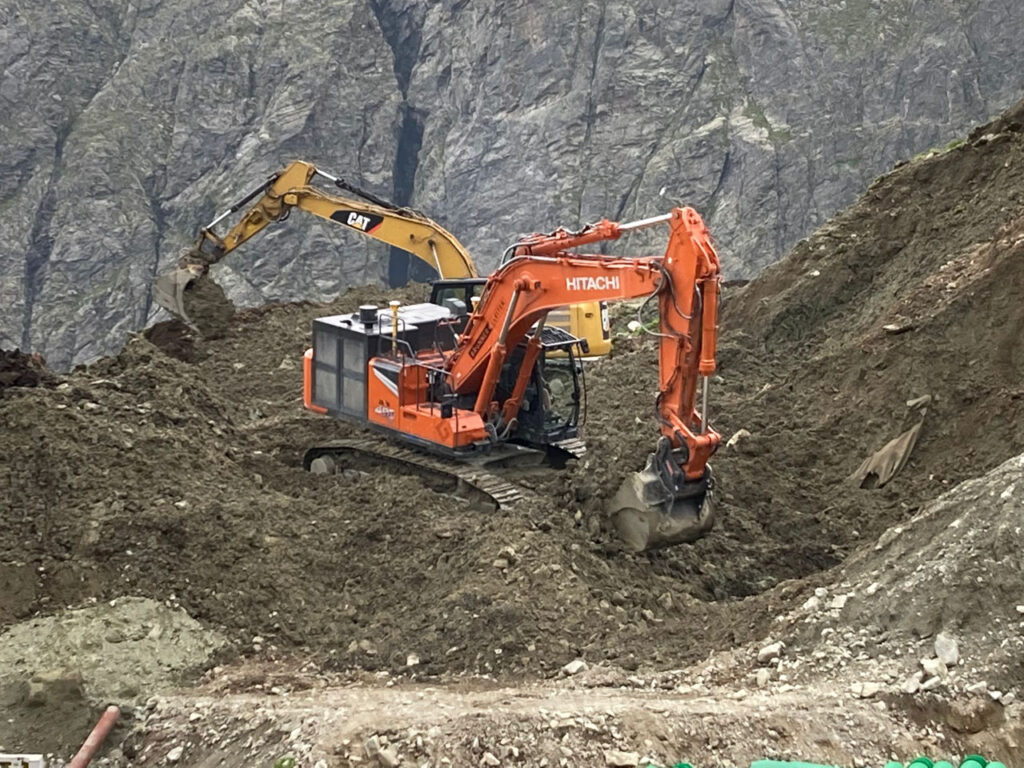 MASCHINEN IM EINSATZ: Caterpillar 323E, Hitachi ZX 490.7, Takeuchi TB2150R, Dumper CAT 730