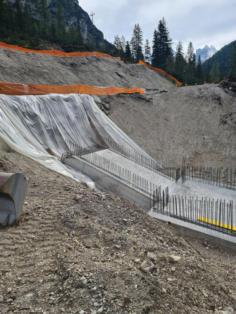 Per la messa in sicurezza e la prevenzione di frane e colate detritiche sulla S.P. 75 Misurina sono stati eseguiti diversi lavori, tra cui la costruzione di opere di contenimento e sottopassaggi stradali con canali per il deflusso delle acque. Tra gli interventi eseguiti anche la realizzazione di strutture in terra armata, scavi, getti di calcestruzzo e murature di controripa in massi ciclopici. Il progetto prevede la costruzione di tre canali di convogliamento delle acque; l’ultimo è attualmente in fase di completamento.