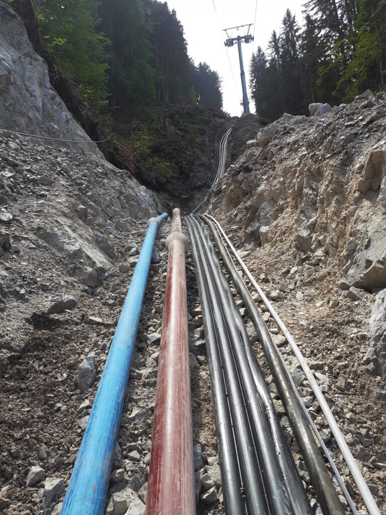 Nell’ambito della ristrutturazione dell’impianto di risalita di Kranjska Gora – località famosa per i campionati mondiali di sci – l’attuale struttura è stata smantellata; successivamente sono stati eseguiti lavori di getto per la costruzione dei plinti della nuova struttura, e scavi per la posa di 1.000 metri di cavi per l’alimentazione.